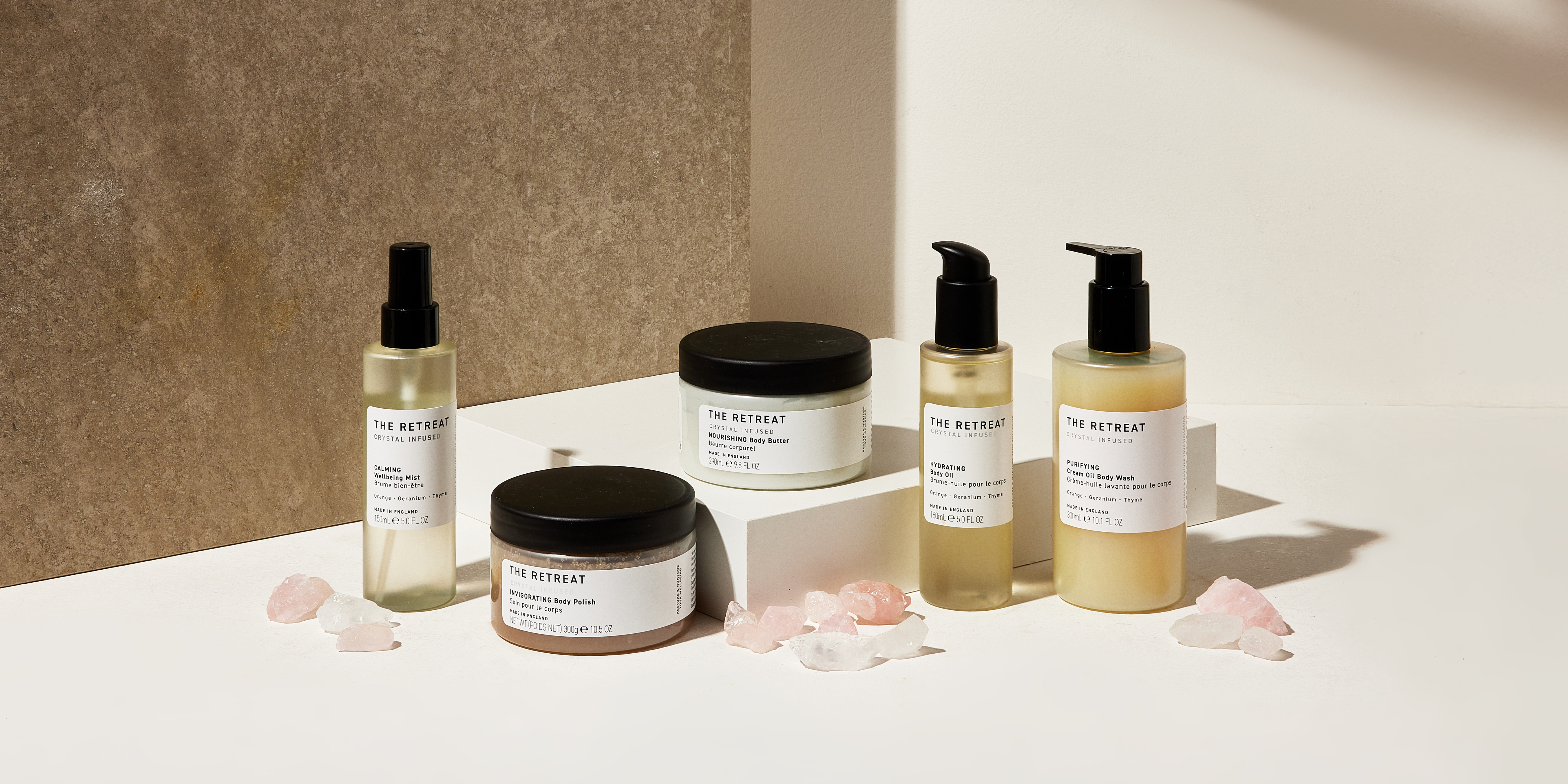 Every product in the Retreat range is infused with Clear Quartz and Rose Quartz, carefully chosen for their purity and vibrational properties to support emotional well-being. We are committed to sourcing every ingredient responsibly, which is why our crystals are accredited by ECOCERT Greenlife—a globally recognised standard for natural and organic cosmetics—giving you peace of mind with every use.