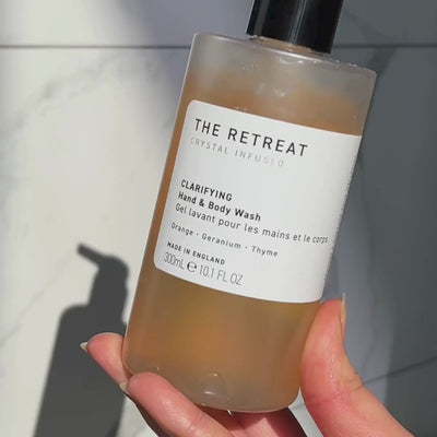 Crafted with our 100% natural 10-Essential-Oil blend and infused with Rose and Clear Quartz Crystal, The Retreat nourishes the skin, uplifts the senses, and restores inner balance.